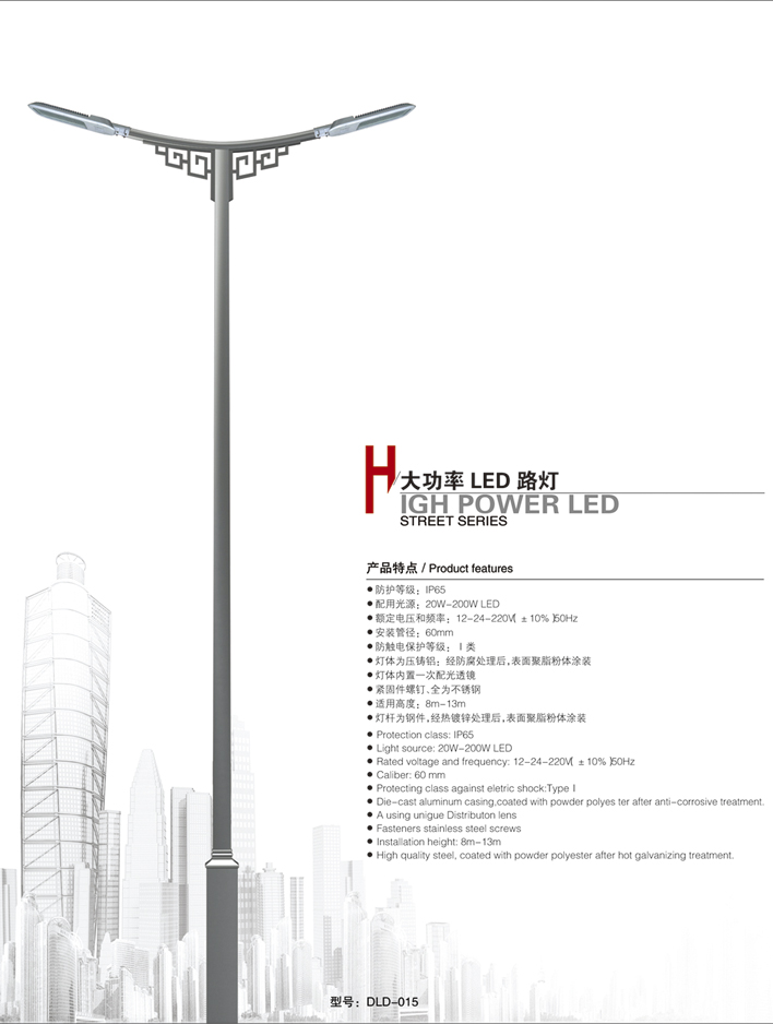 ● 燈桿為鋼件,經熱鍍鋅處理后,表面聚脂粉體涂裝