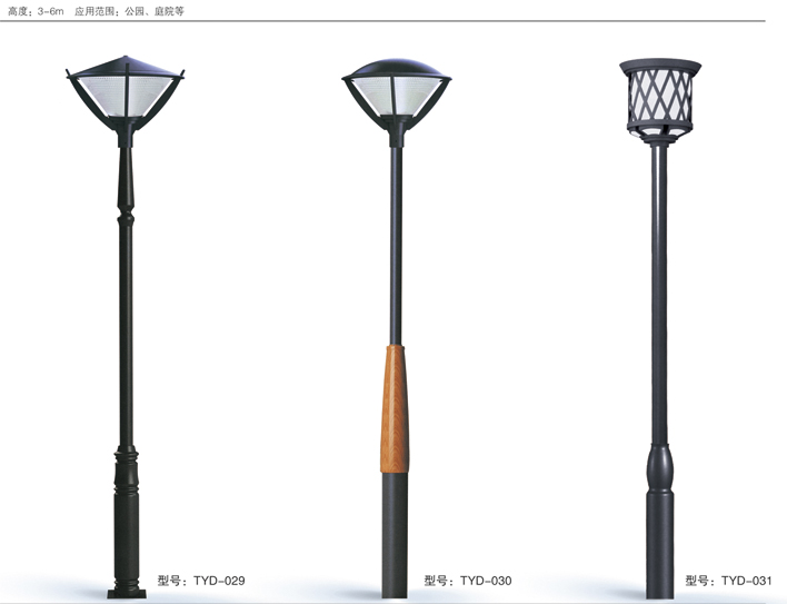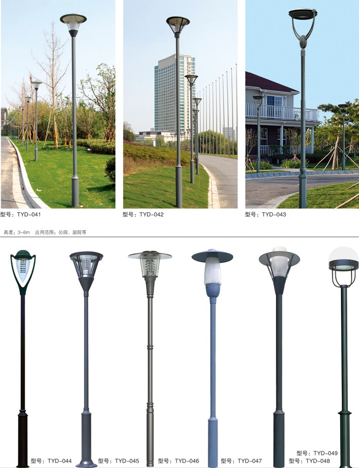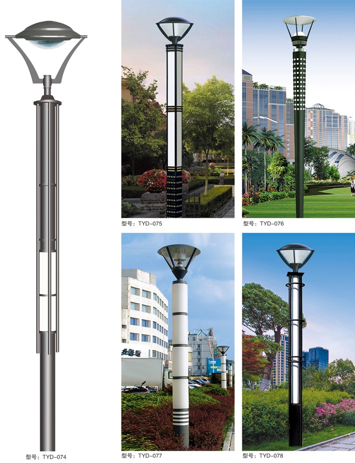 庭院燈系列燈飾照明是園林景區(qū)、文化休閑娛樂場(chǎng)所、步行街、商業(yè)街、住宅小區(qū)、行車道兩側(cè)等場(chǎng)所所普遍使用的裝飾及照明光源配置形式,是裝飾型照明燈飾產(chǎn)品。燈桿材質(zhì)多樣,光源運(yùn)用靈活多變,結(jié)構(gòu)形態(tài)千姿百態(tài),是美化、亮化,綠化的有機(jī)結(jié)合,光與影。燈與藝術(shù)的完美結(jié)合。
