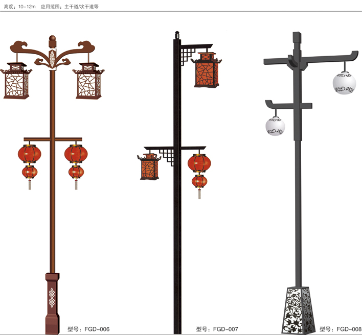 仿古燈結(jié)構(gòu)簡(jiǎn)潔,外形美觀流暢,主要應(yīng)用于城市道路,古鎮(zhèn),景觀亮化,旅游景區(qū),公園庭院,廣場(chǎng)照明及亮化裝飾。仿古燈設(shè)計(jì)自然常態(tài),在展示現(xiàn)代精美制造工藝的同時(shí),又融入多種具有一定地方或民族文化特色的元素,即可美化亮化環(huán)境,又能成為一座城市一個(gè)地區(qū)一方民族文化的象征。無(wú)論是旅游景區(qū)還是園林古鎮(zhèn)都有他適合的道理極具觀賞和使用價(jià)值。